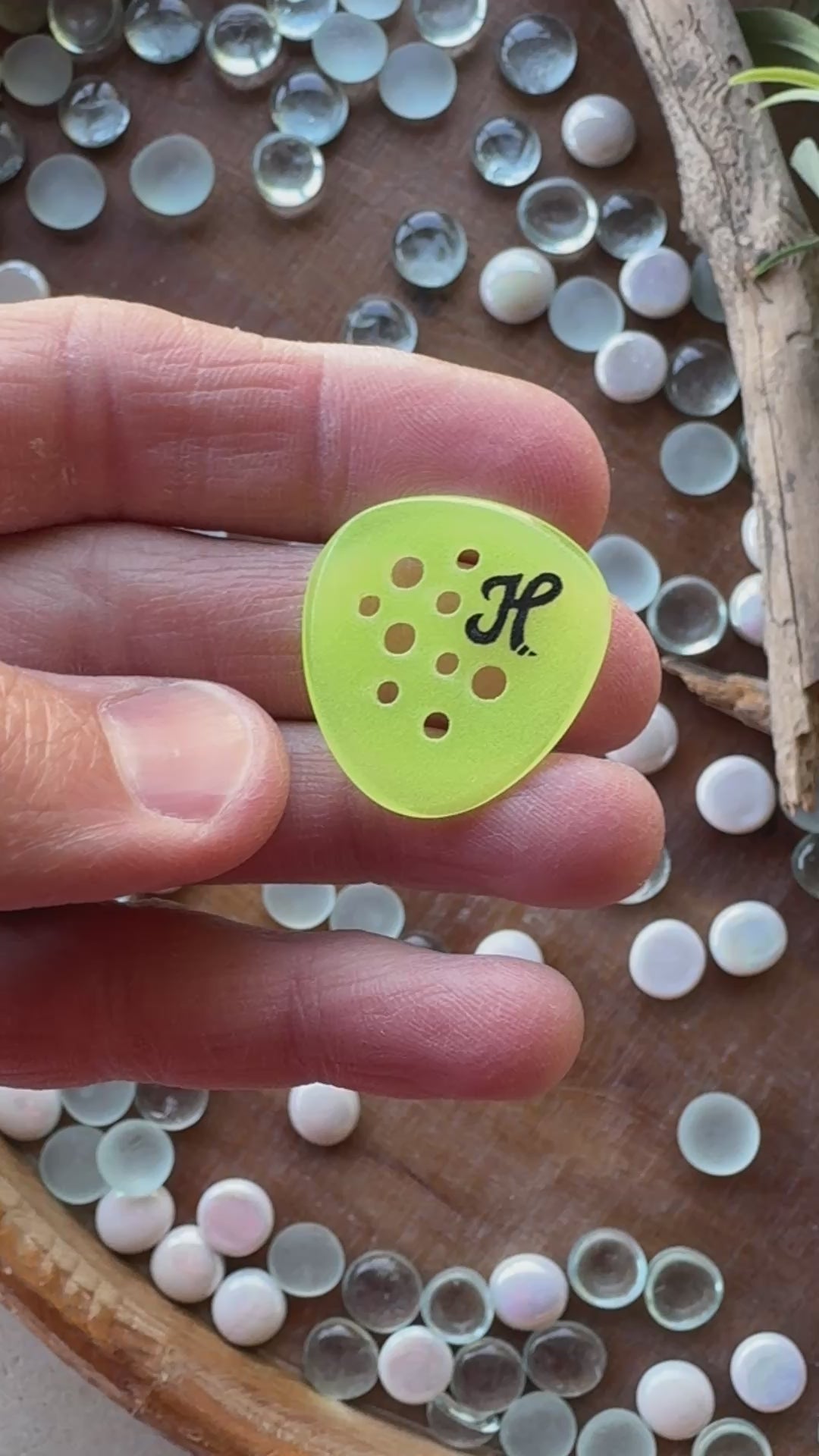 Have you ever wanted to design your perfect guitar pick? Our glow material come in 6 standard shapes with 3 different sizes, grips and bevel options.