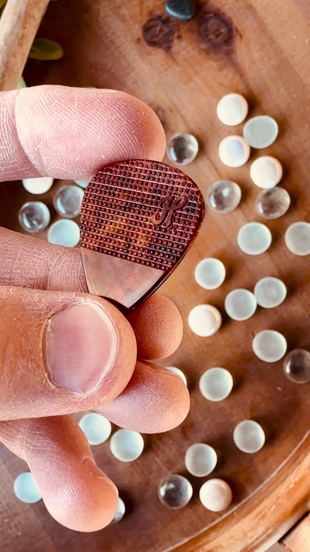 Honey's PEEK pick is a super high quality & great feeling material. Very smooth, incredibly durable and extremely comfortable to play. If you're curious how this compares to the other top thermoplastic pick in the industry like I was, the PEEK pick has a very similar feel & string tone, but seems to be a tad more tactile/grippy.