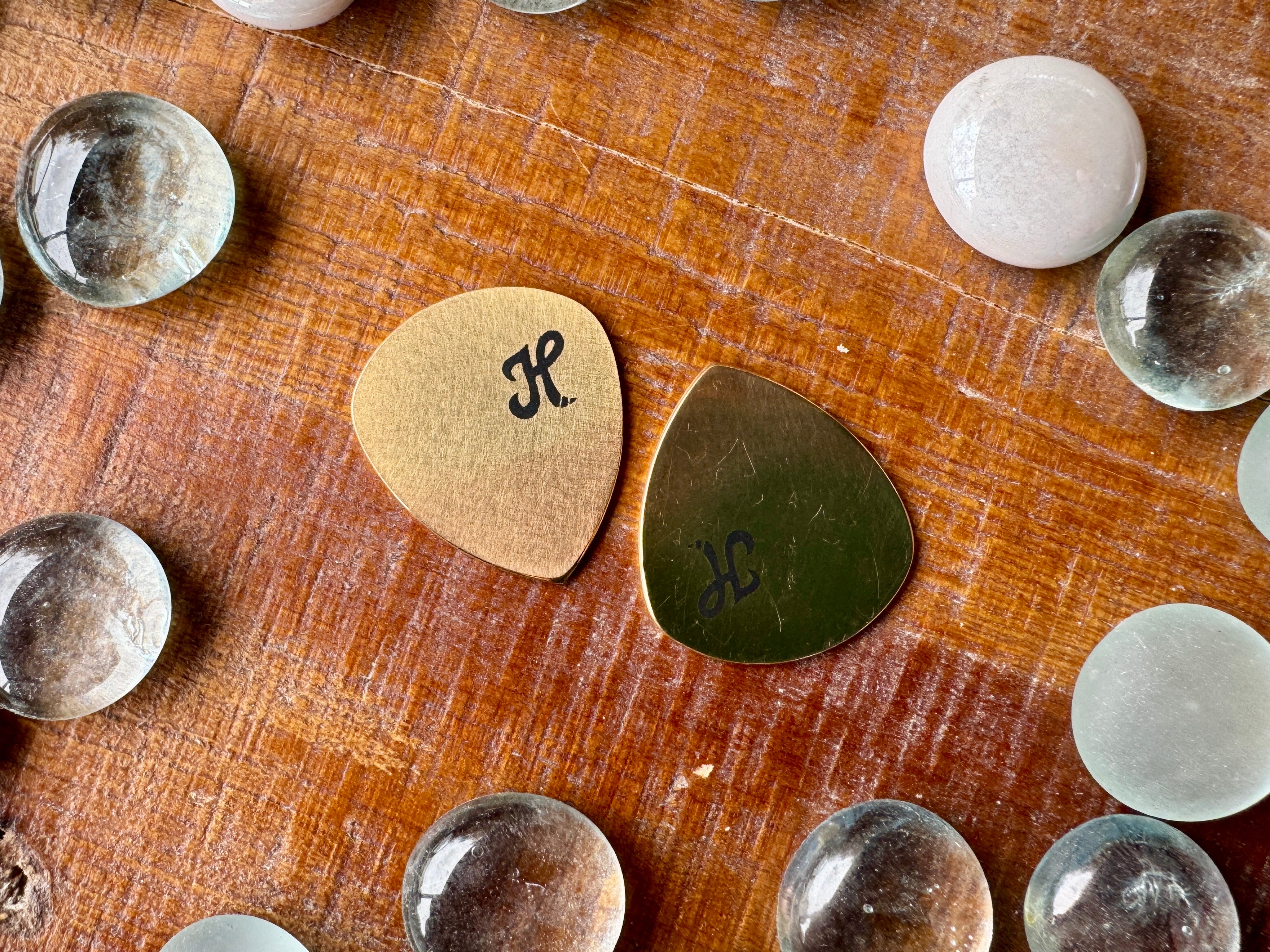 Honey's PEEK pick is a super high quality & great feeling material. Very smooth, incredibly durable and extremely comfortable to play. If you're curious how this compares to the other top thermoplastic pick in the industry like I was, the PEEK pick has a very similar feel & string tone, but seems to be a tad more tactile/grippy.